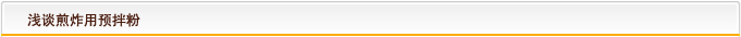 預上粉又稱(chēng)底粉,顧名思義就是最先裹在素材上的一道干粉,主要作用就是提高素材與裹衣之間的粘結性,使產(chǎn)品經(jīng)過(guò)高溫油炸后不致于脫殼,另一方面就是提高素材經(jīng)油炸后的含水量,避免產(chǎn)生干硬的口感。